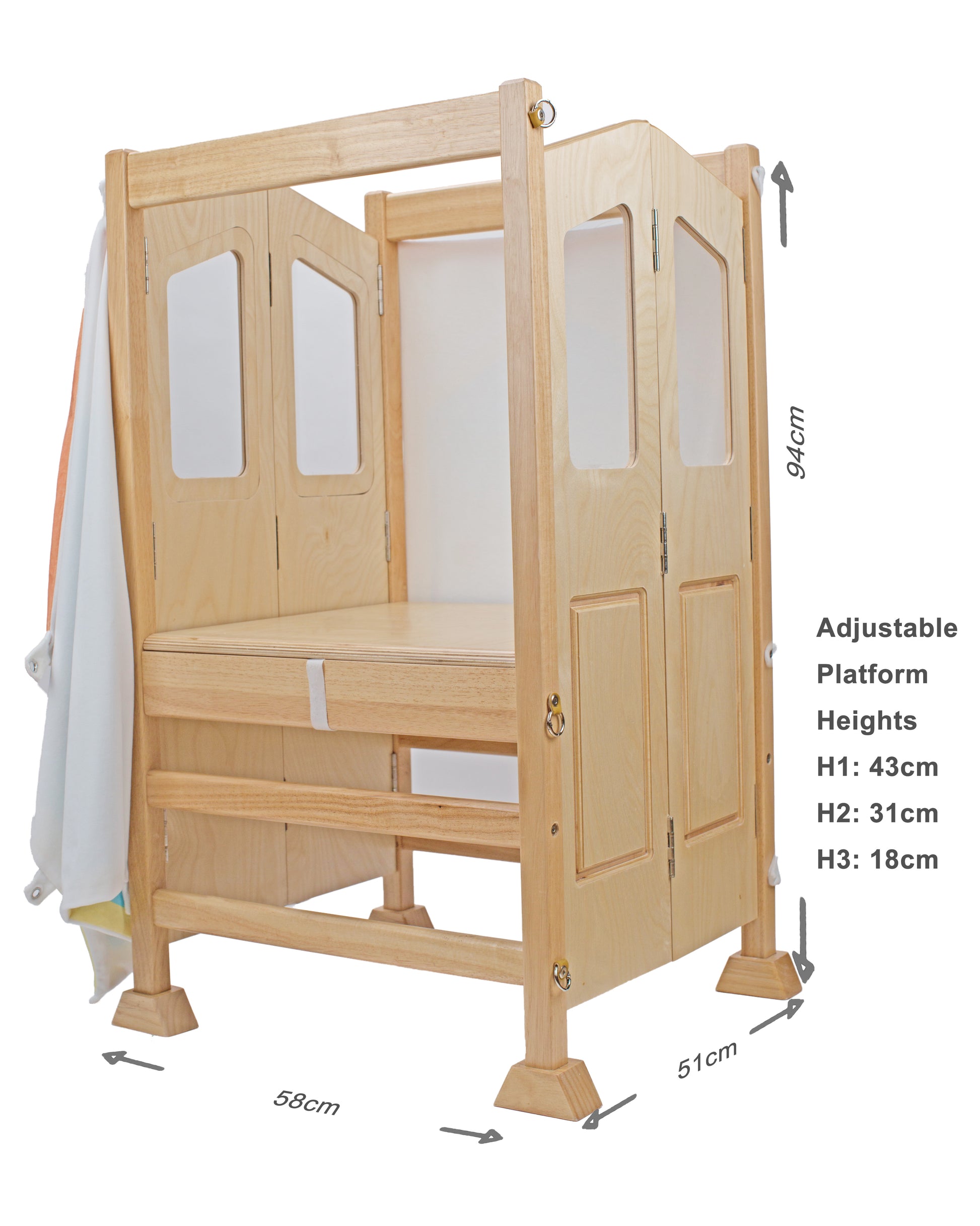 • Child-Centric Features: Designed with a large standing platform that provides ample space and stability, and a natural wood finish that blends seamlessly into any kitchen.